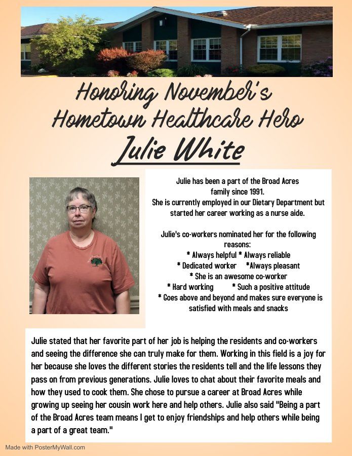 Each month, we feature a different team member as our Hometown Healthcare Hero. We love to celebrate our team members every day, but our Hometown Healthcare Hero is similar to a team member of the month program. Join us in celebrating our team members and all we do on our Facebook page.